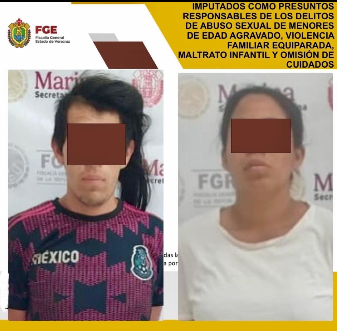 Veracruz, Ver.,- La Fiscalía General del Estado, a través de la Fiscalía Coordinadora Especializada en Delitos contra las Mujeres, Feminicidio, Familia y Trata de Personas, reportó la legal detención y formulación de imputación en contra de Mónica Vianey “N” y Carlos Manuel “N”, por su presunta responsabilidad en los delitos de abuso sexual de menores de edad agravado, violencia familiar equiparada, maltrato infantil y omisión de cuidados en agravio de cuatro menores de edad.