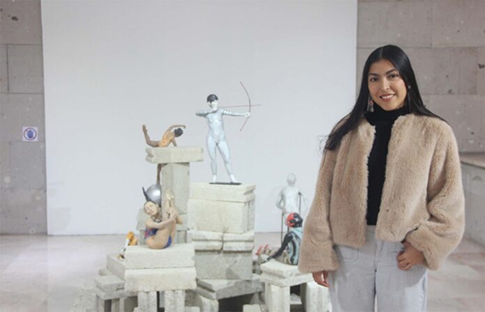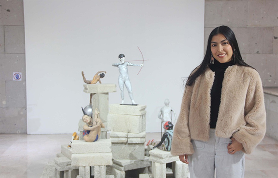 La muestra es resultado de la beca del Programa de Estímulo a la Creación y Desarrollo Artístico (PECDA); está integrada por 16 piezas, de las cuales 12 corresponden a obra cerámica. La joven artista explicó que el proyecto surge de su interés por revisar la historia del arte y cuestionar la manera en que se representa a las mujeres, particularmente en contextos de exigencia física y emocional.