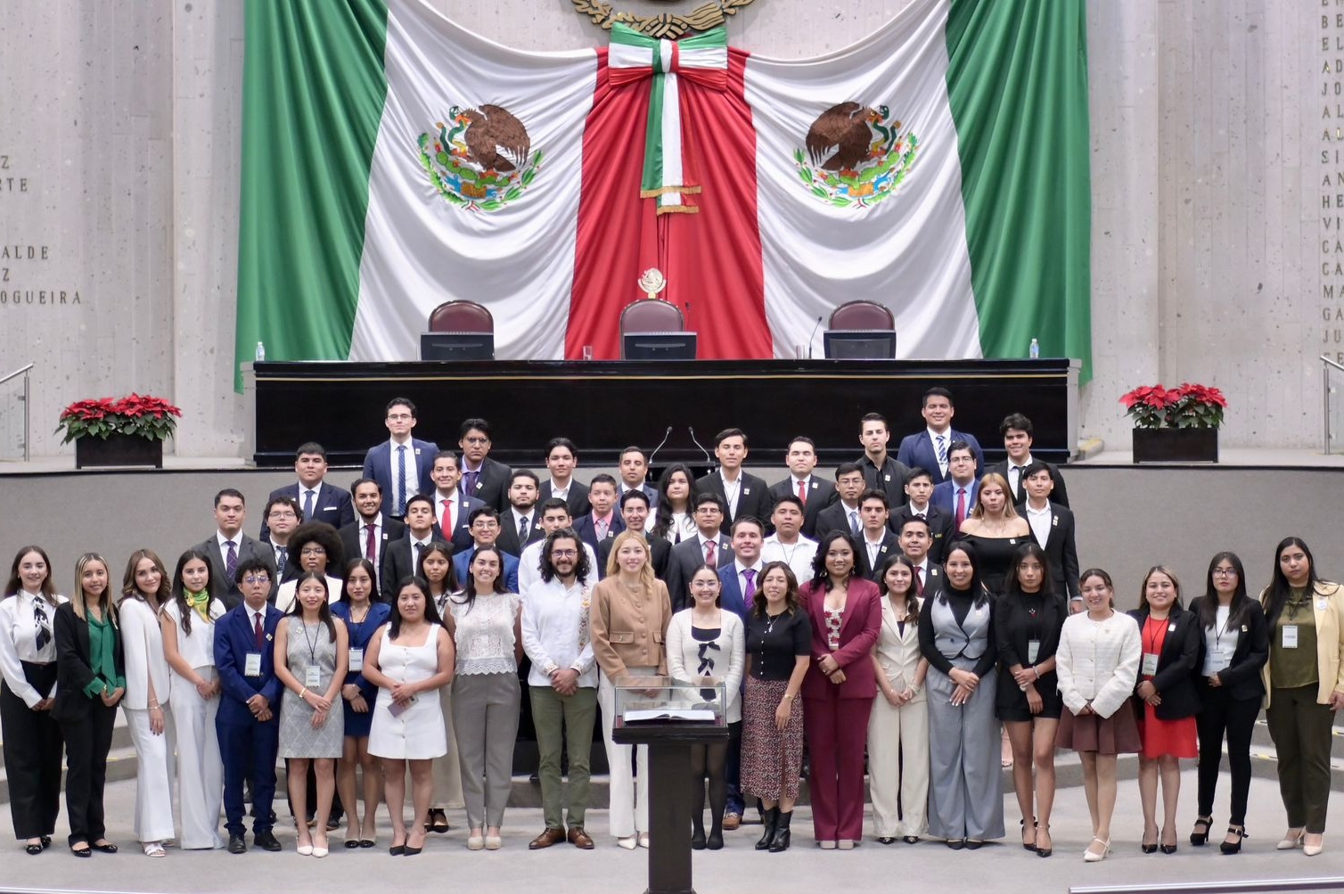 También a Getsemaní Rodríguez Barradas, Axel Jael Romero Guerra, Romina Santos Hernández, Karla Sebastián Gabriel, Elías Habid Soto Macín, Felipe de Jesús Tecalco Jáuregui, Yanelle Tshiboyi, Ari Jafet Velasco Castillo y a Luis Alexei Vidal Colunga, quienes desde la tribuna presentaron sus propuestas, como también lo hicieron el y las integrantes de la Mesa Directiva.