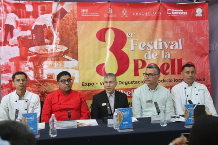 24.03.2026 Xalapa, Ver.- Autoridades turísticas, chefs y organizadores anunciaron la tercera edición del Festival de la Paella 2026, que se realizará en Playa de Chachalacas con el objetivo de impulsar la gastronomía regional y atraer visitantes a esta zona costera del municipio de Úrsulo Galván.