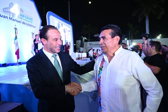 Xalapa, Ver., 04 de diciembre de 2025.- El presidente de la Junta de Coordinación Política (Jucopo) de la LXVII Legislatura del estado de Veracruz, diputado Esteban Bautista Hernández, acudió al cuarto informe de labores del presidente municipal de Boca del Río, Juan Manuel de Unanue Abascal, quien dio cuenta a la ciudadanía sobre las principales acciones realizadas en esta demarcación durante la presente anualidad.