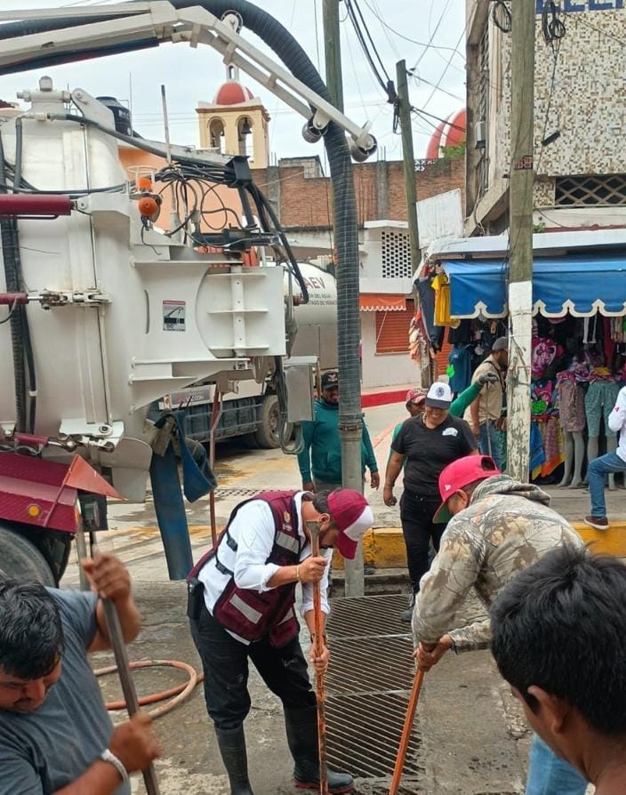 Álamo, Ver., 10 de abril de 2026.- La Comisión del Agua del Estado (CAEV) realiza la limpieza y desazolve del colector principal, alcantarillas, tragatormentas y redes de drenaje sanitario y pluvial en la cabecera municipal de Álamo, debido a afectaciones provocadas por las recientes lluvias por el paso del Frente Frío No. 43.