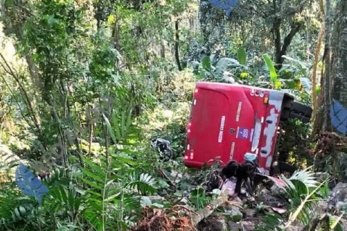 16.01.2926 El Naranjal, Ver.- La mañana de este viernes un autobús que transportaba estudiantes se salió del camino y cayó a un barranco en la carretera Zoquiapa–Naranjal, a la altura del paraje conocido como El Banco.