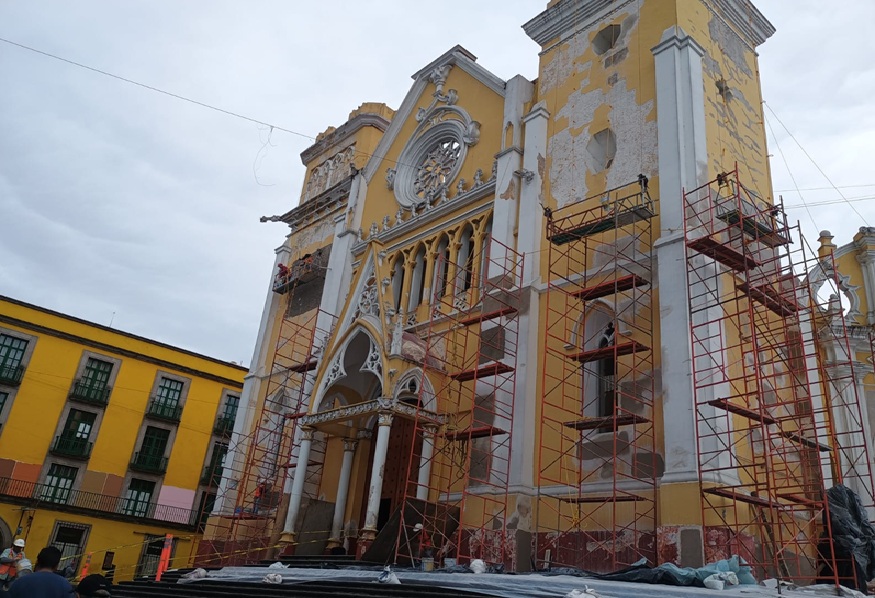 18.01.2026 Xalapa, Ver.- Como parte del proyecto integral de restauración y unificación de la imagen urbana del Centro Histórico de Xalapa, se llevan a cabo trabajos de rehabilitación en edificios emblemáticos, entre ellos la Catedral Metropolitana, la cual es pintada en tonos blancos y grises claros, respetando los lineamientos establecidos para inmuebles históricos.