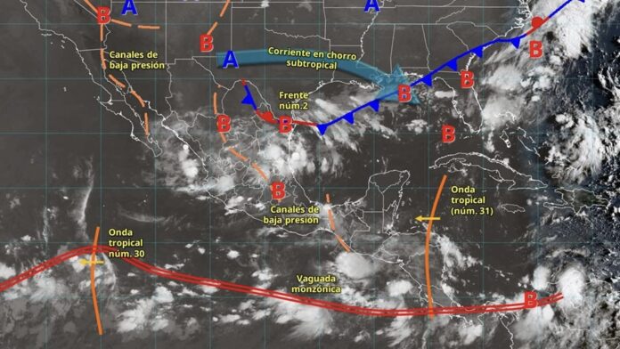 01.10.2025 De acuerdo con el pronóstico emitido por la Secretaría de Protección Civil, se espera que el centro de baja presión localizado esta mañana sobre el suroeste del Golfo de México ingrese a Tabasco mañana jueves, y deje una larga vaguada con eje sobre el oeste y suroeste del mismo Golfo en los siguientes días. Asimismo, se mantendrá el viento del Norte en costas, el cual se intensificará ligeramente entre hoy y el viernes, elevando el oleaje cerca del litoral.