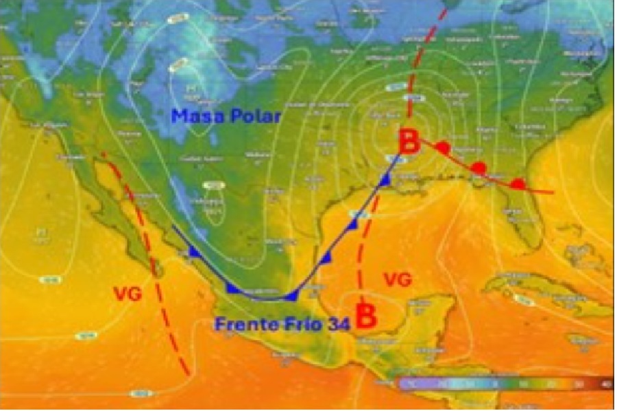 Los modelos de pronóstico señalan que el frente frío número 34, impulsado por una masa polar, cruzará el estado de Veracruz el domingo 15 de febrero. El sistema se desplazará hacia el Este y Sureste, dejando de afectar directamente a la entidad el lunes 16.