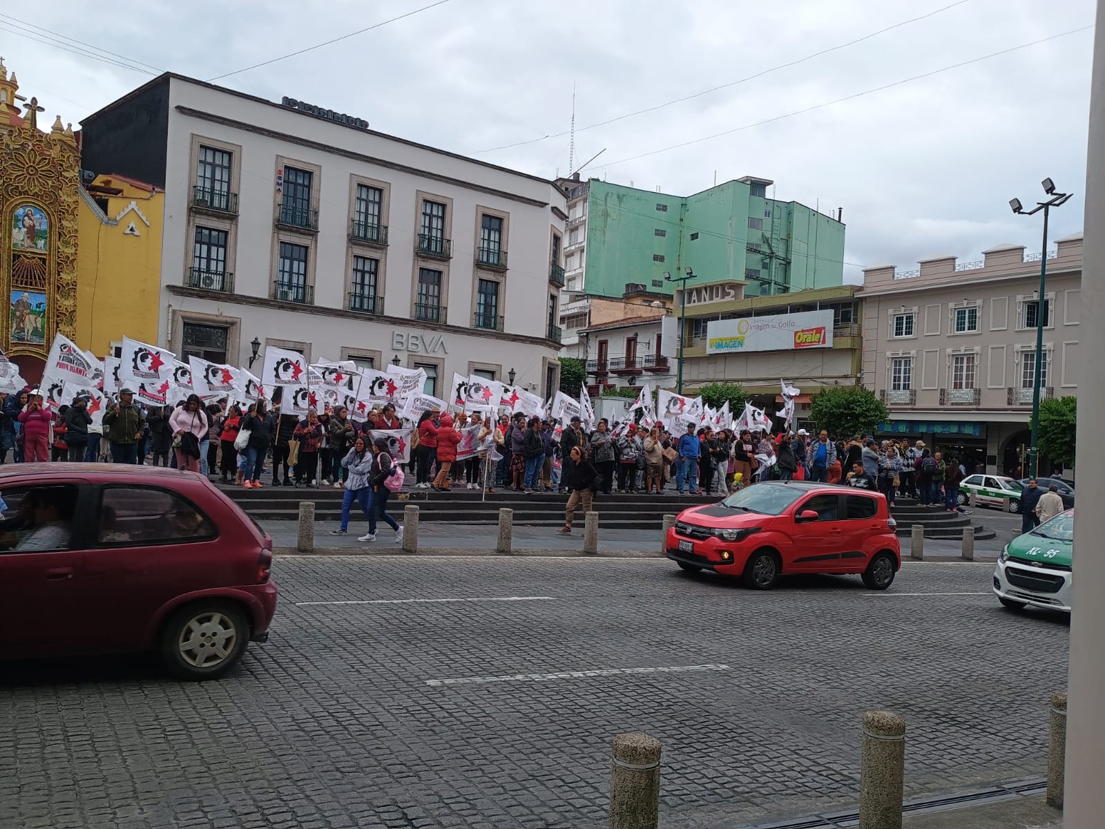 Los manifestantes anunciaron que tras su pronunciamiento frente a Palacio de Gobierno, marcharían hacia las oficinas de Patrimonio del Estado, y advirtieron que más contingentes llegarán a Xalapa en los próximos días.