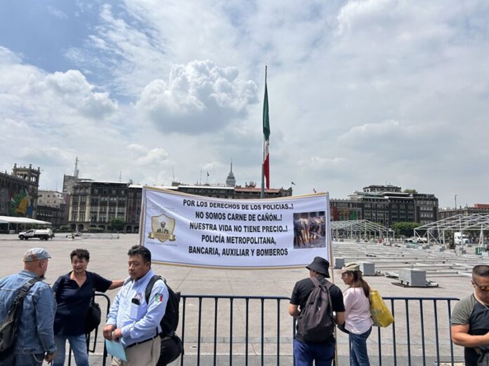 06.10.2025.- Ciudad de México. Alrededor de 400 policías en activo, jubilados y familiares se manifestaron este lunes en el Zócalo capitalino y calles del Centro Histórico para exigir mejores condiciones de seguridad, respeto a sus derechos laborales y la destitución de mandos policiacos que, según denuncian, han actuado con negligencia y abandono institucional ante agresiones sufridas durante la marcha del 2 de octubre.