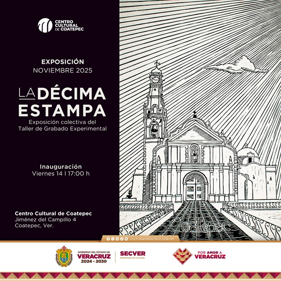 Xalapa, Ver., 13 de noviembre de 2025.- La Secretaría de Cultura de Veracruz (SECVER) invita al público en general a la inauguración de la exposición La décima estampa, que se llevará a cabo en el Centro cultural del Coatepec, mañana a las 17:00 horas. La entra es gratuita.