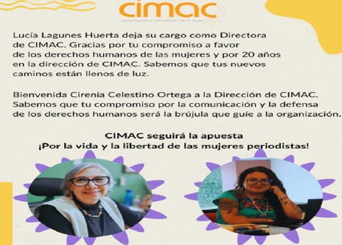 El relevo en la acreditada agencia de noticias con perspectiva de género fue dado a conocer por la misma CIMAC en un breve mensaje: