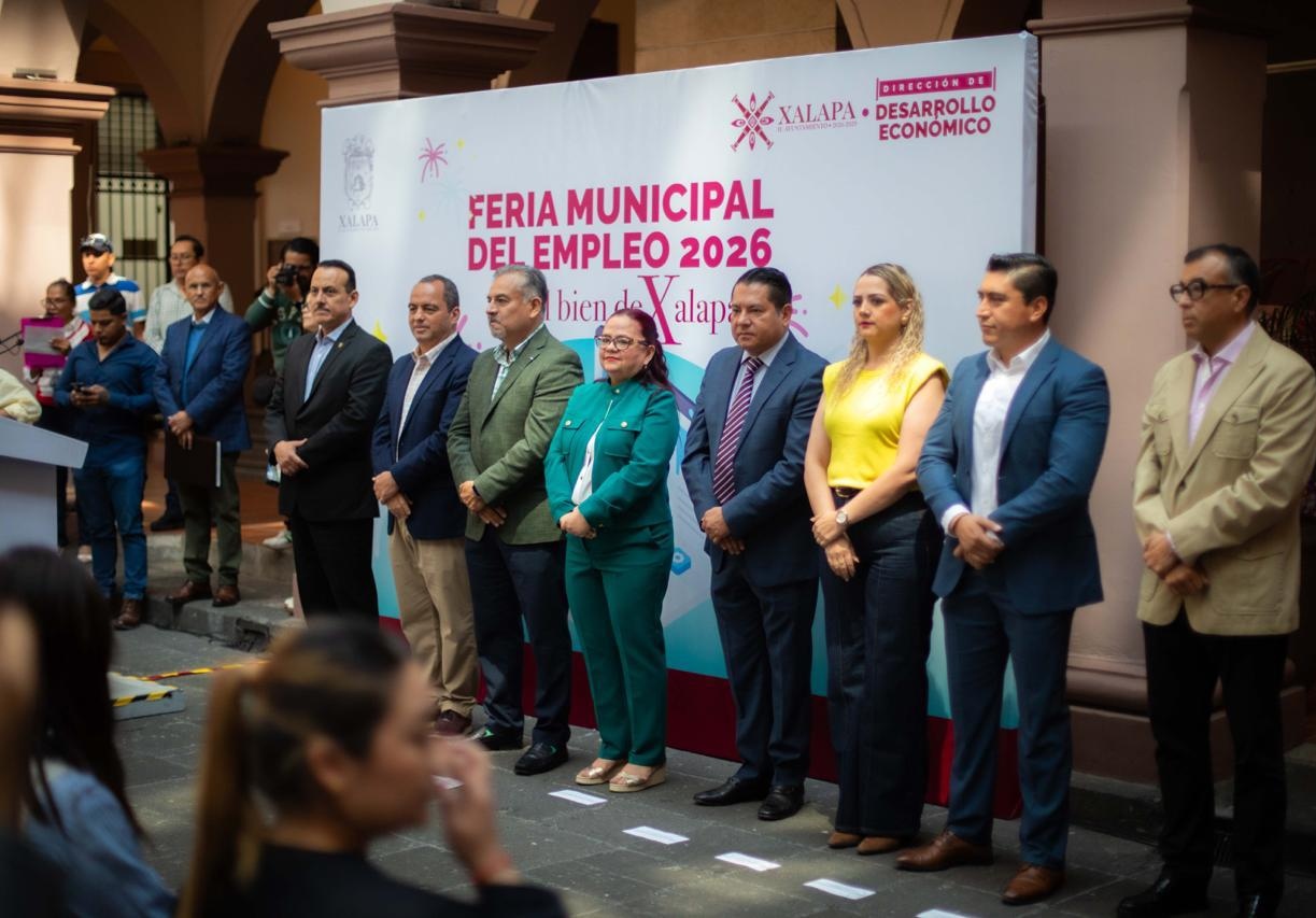 Xalapa, Ver., 13 de marzo de 2026.- En el Ayuntamiento asumimos el compromiso de impulsar el empleo como una responsabilidad pública de primer orden, ya que cuando se genera trabajo se fortalece la economía, mejora la calidad de vida de las familias y se construye una sociedad más justa, afirmó la Alcaldesa, Lic. Daniela Griego Ceballos, al inaugurar con el titular de la Secretaría de Trabajo, Previsión Social y Productividad de Veracruz, Mtro. Luis Arturo Santiago Martínez, la Primera Feria Municipal del Empleo 2026, realizada este viernes en el patio central de Palacio Municipal.