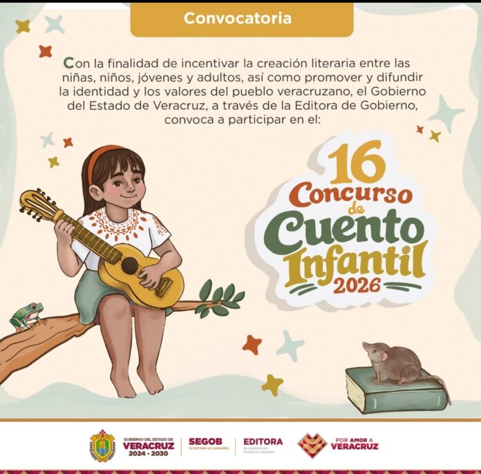 Xalapa, Ver., 21 de febrero de 2026.- Con el propósito de incentivar la creación literaria y fortalecer la identidad cultural de la entidad, la Secretaría de Gobierno, a través de la Editora de Gobierno del Estado de Veracruz, lanzó la convocatoria del 16 Concurso de Cuento Infantil 2026.