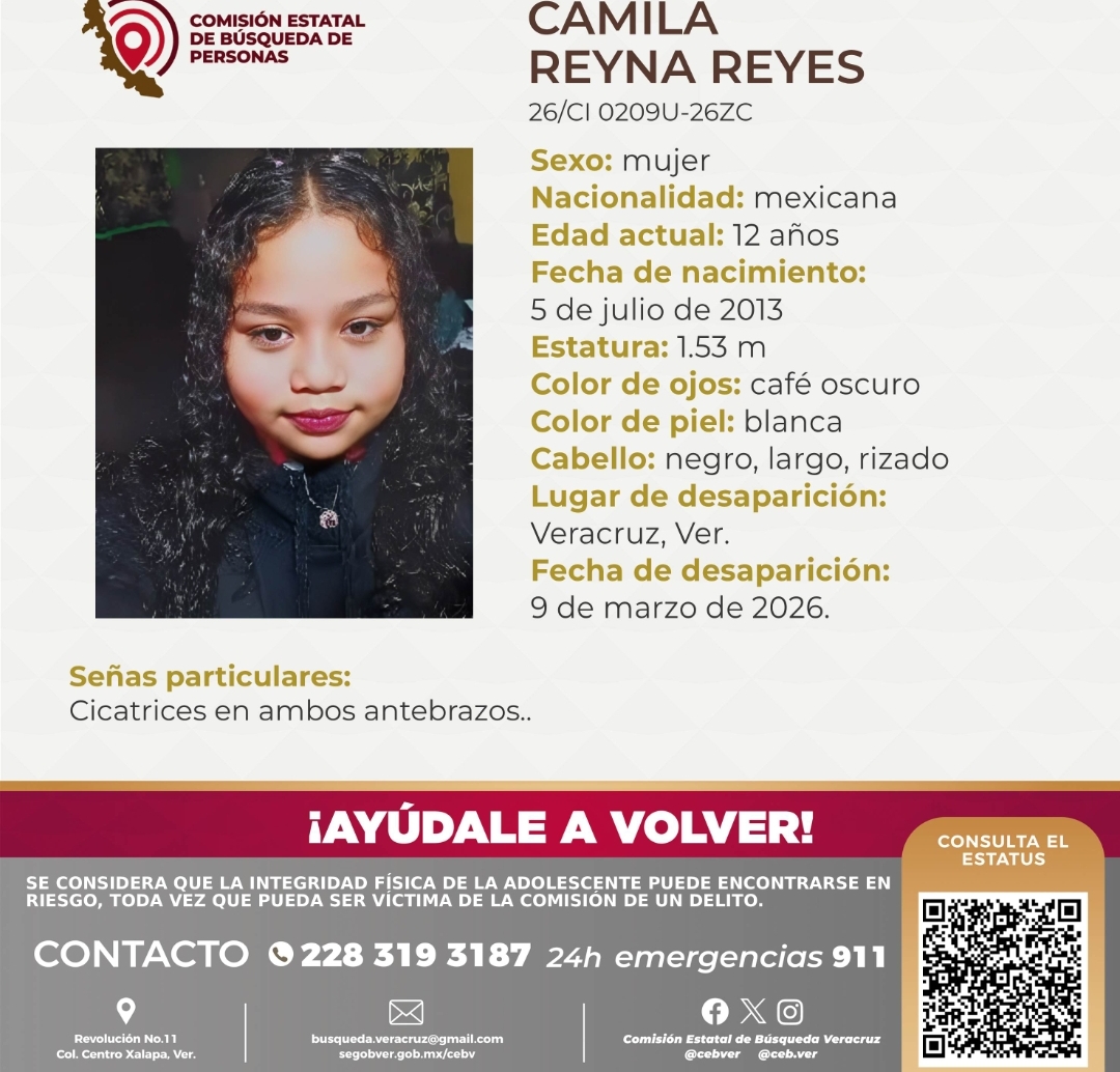 Organizaciones civiles y colectivos de búsqueda han expresado su solidaridad con la familia Reyna Reyes, haciendo un llamado a la ciudadanía para que cualquier información sobre el paradero de la niña sea reportada de inmediato al número de emergencias 911 o directamente a los números de la Comisión Estatal de Búsqueda de Veracruz.