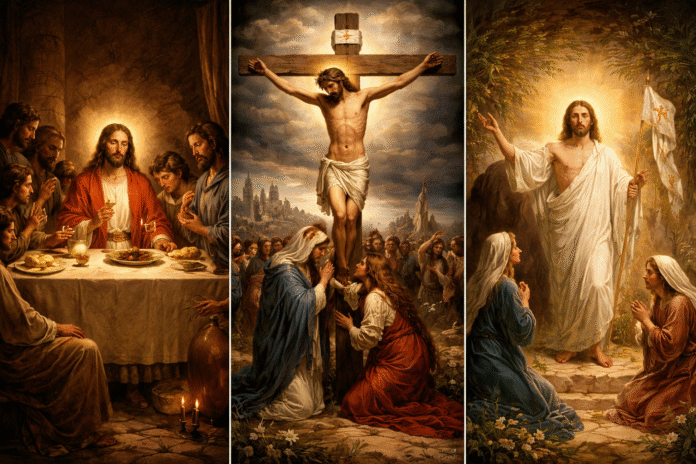 Adviento, Navidad, Cuaresma y Pascua, son las cuatro celebraciones principales, a las que se añaden los tiempos ordinarios y destacadamente el Triduo Pascual, un lapso breve que se refiere a los momentos culminantes de la vida terrenal de Jesús: la agonía en el huerto de los Olivos, el proceso de su crucifixión y muerte, y finalmente su gloriosa resurrección.