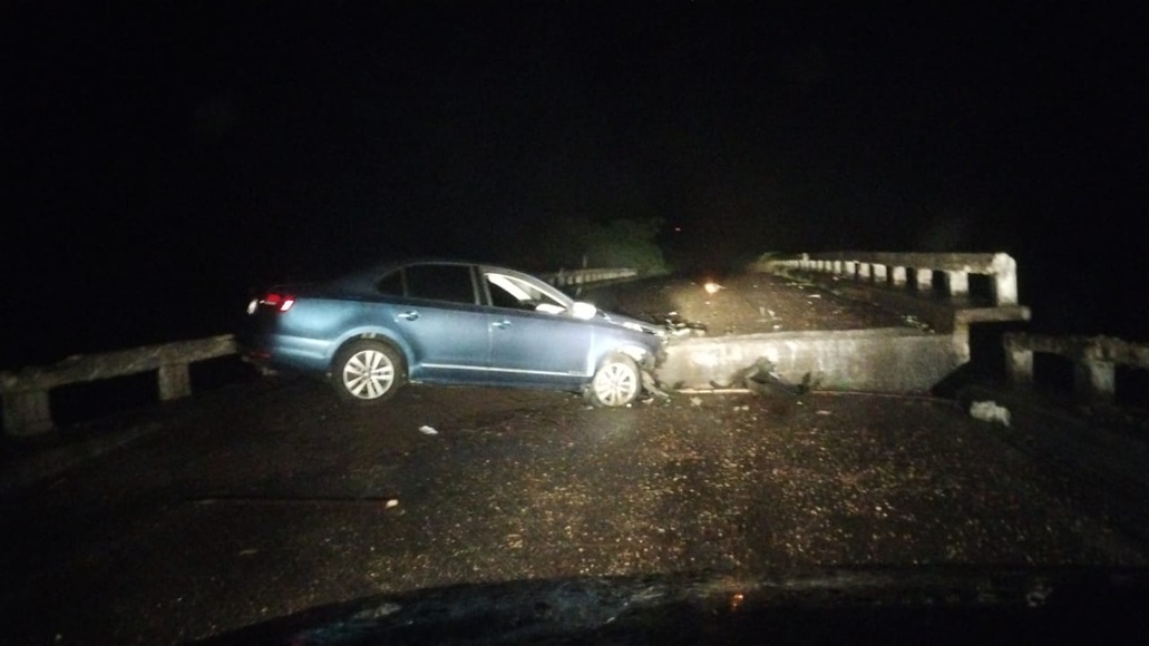 La madrugada del lunes 10 de noviembre, un conductor foráneo que seguía indicaciones de Google Maps terminó impactado contra una parte de la estructura que continúa expuesta a mitad del puente. Su vehículo quedó severamente dañado.