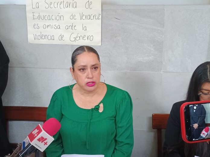 08.10.2025 Xalapa, Ver.- La abogada Iris Ayerín Gabriel Martínez presentó el caso de Tania Eloisa Fernández Jorge, directora de la escuela telesecundaria Don Fernando Gutiérrez Barrios en Izantla, Veracruz, quien ha sido víctima de violencia laboral y acoso por parte de autoridades educativas.