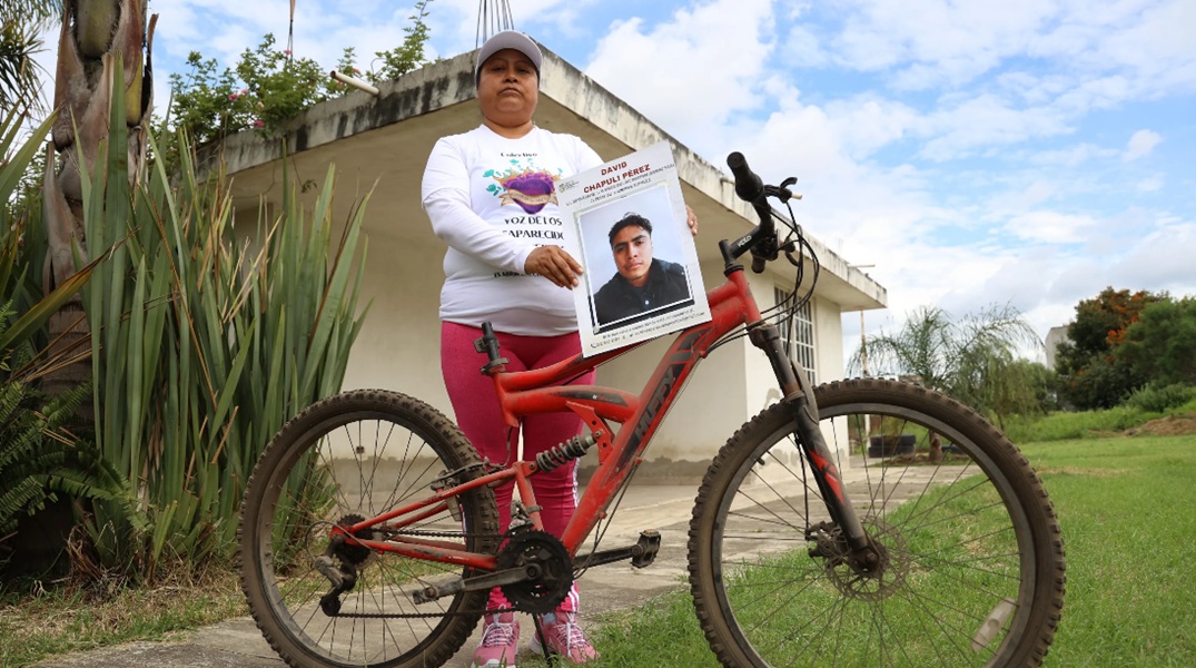 **Foto de portada: Blanca Pérez, madre de David Chapuli, sostiene la foto de su hijo y su bicicleta, que encontraron tirada a media calle el día de su desaparición, el 19 de febrero de 2023 en Coronango, Puebla. (Daniela Portillo/EsImagen/ObturadorMX)