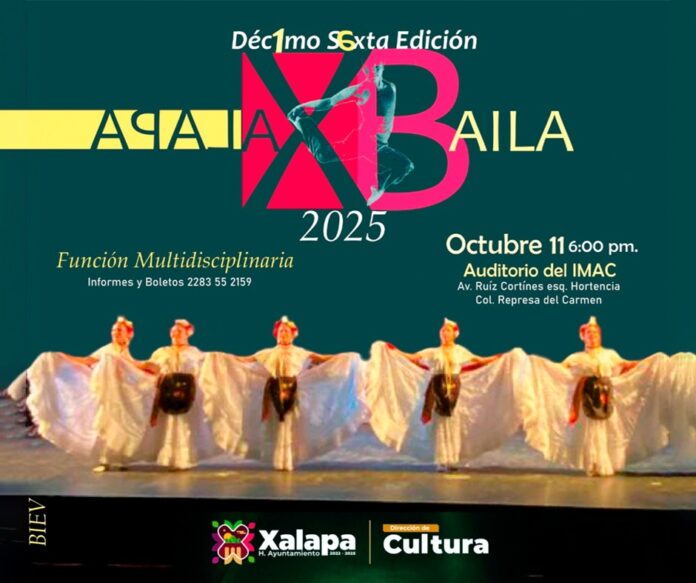En el auditorio de la IMAC, a las 18:00 horas, se realizará la décima sexta edición de Xalapa Baila 2025, que presentará una función multidisciplinaria.