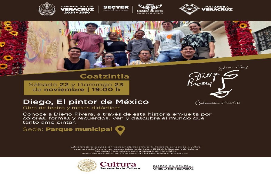 *Coatzintla, Xalapa, Ver., 21 de noviembre de 2025.- La Secretaría de Cultura de Veracruz (SECVER), en colaboración con el ayuntamiento de Coatzintla, invita a conocer la Galería Móvil 2025: Diego Rivera, la cual estará instalada en el parque municipal hasta el próximo 25 de noviembre.