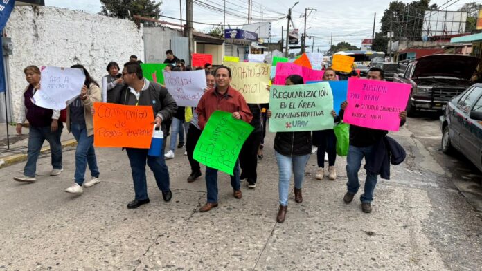 Con consignas y mensajes de protesta, los manifestantes acusaron que, además de los adeudos salariales, fueron dados de baja de la plataforma digital institucional, lo que —afirmaron— paraliza las actividades académicas. “Nos dieron de baja de la plataforma y con eso, prácticamente la UPAV deja de existir”, expresaron.