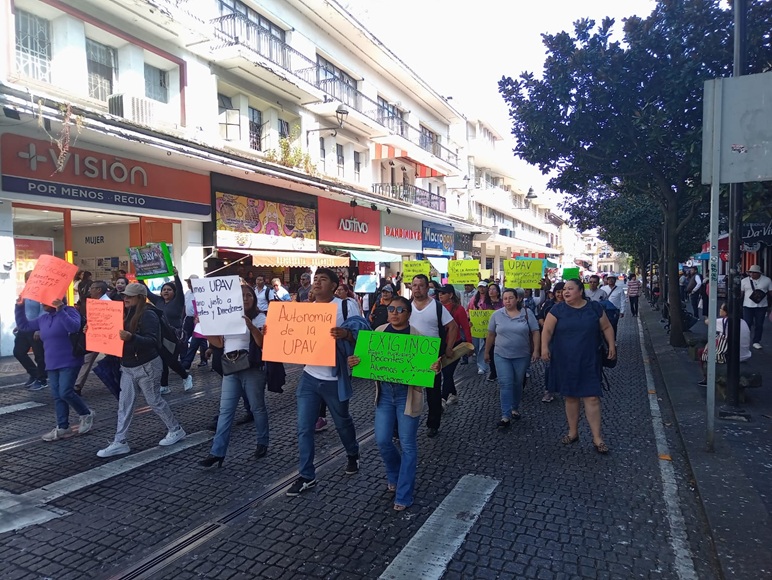 29.16.2025 Xalapa, Ver.- Docentes, directivos y estudiantes de la Universidad Popular Autónoma de Veracruz (UPAV) se manifestaron para denunciar la falta de pago de salarios, la incertidumbre laboral y académica, así como presuntas irregularidades administrativas, por lo que exigieron una audiencia directa con la gobernadora del estado para esclarecer su situación.