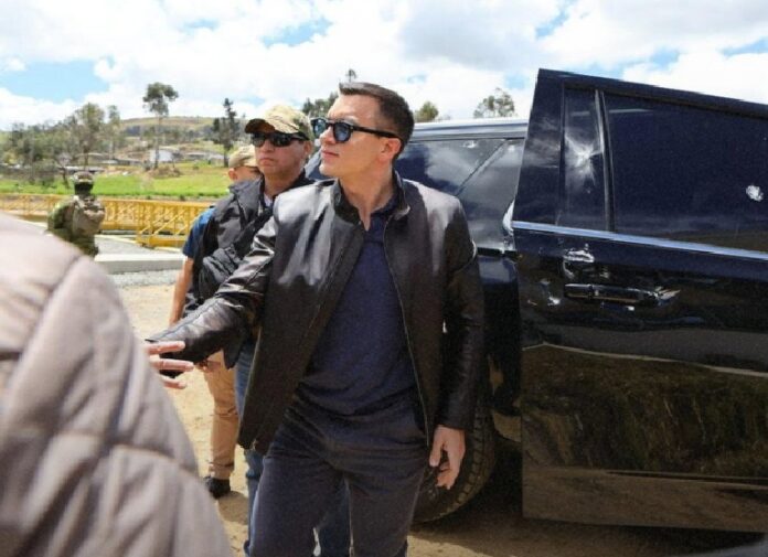 07.101.2025 Ecuador.- El presidente ecuatoriano Daniel Noboa fue víctima de un ataque de un grupo social mientras se desplazaba en caravana oficial por el cantón Tambo, en la provincia andina de Cañar.