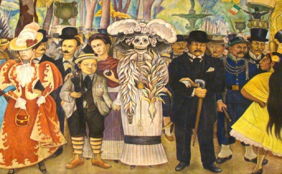 Décadas más tarde, el muralista Diego Rivera retomó la figura en su obra Sueño de una tarde dominical en la Alameda Central (1947). Fue él quien le otorgó el nombre con el que hoy la conocemos: La Catrina, derivado del término “catrín”, que hacía referencia a una persona elegante y refinada.