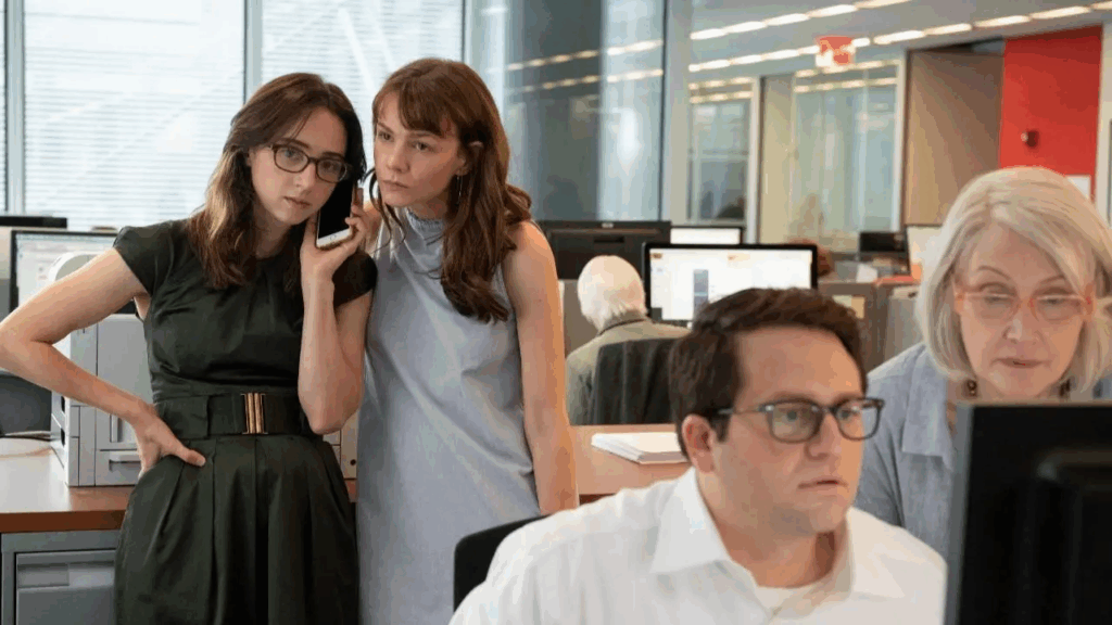 Jodi y Megan no solo eran dos periodistas enfrentando una de las investigaciones más difíciles de sus carreras, sino madres de niñas y niños pequeños. En varias escenas de la película se retrata como se ven obligadas a contestar llamadas importantes mientras están en casa como cuidadoras o abandonar reuniones familiares para asistir a entrevistas cruciales, lo que refleja la doble carga de trabajo sobre las mujeres periodistas.