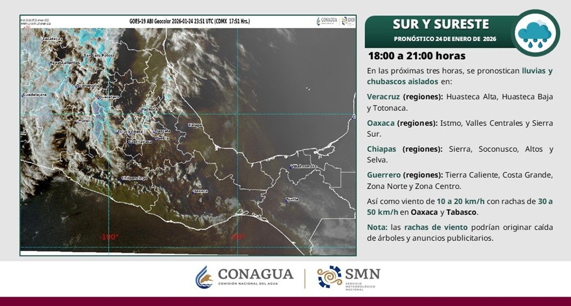 La población es exhortada a mantenerse atenta a los avisos oficiales y seguir las recomendaciones de Protección Civil para reducir riesgos ante las condiciones meteorológicas previstas.