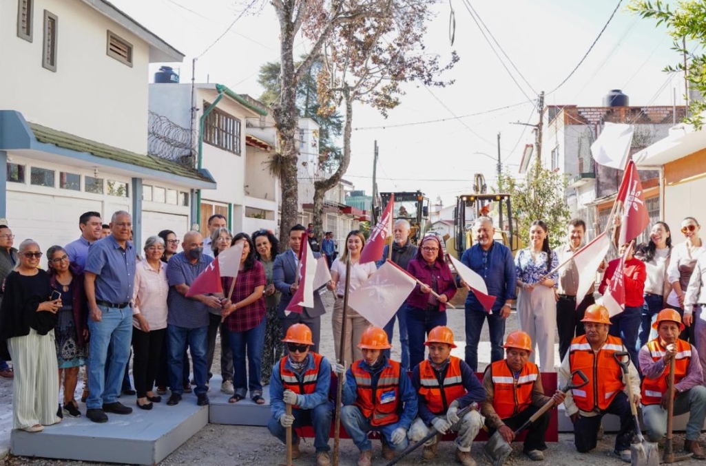 Xalapa, Ver., 18 de febrero de 2026.-*ñ Como parte del Programa General de Inversión Pública y de los 100 días de resultados, el Ayuntamiento de Xalapa, encabezado por la Lic. Daniela Griego Ceballos, a través de la Dirección de Obras Públicas, dio el banderazo de inicio a las primeras obras de pavimentación con concreto hidráulico, las cuales contemplan acciones de alumbrado público.