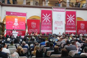Ante la presencia de la gobernadora del Estado Rocío Nahle García, funcionarias y funcionarios de los tres órdenes de gobierno, representantes de los distintos sectores de la sociedad y organizaciones sindicales, la presidenta municipal destacó que este nuevo gobierno se inscribe en el proyecto nacional encabezado por la presidenta de México, Claudia Sheinbaum Pardo, y en el ámbito estatal por la gobernadora Rocío Nahle García, enfatizando que por tercera ocasión Xalapa será gobernada por Morena, ahora con un cabildo democrático, con más espacios para las mujeres, y con un equipo profesional comprometido con el trabajo y la administración honesta de los recursos públicos.