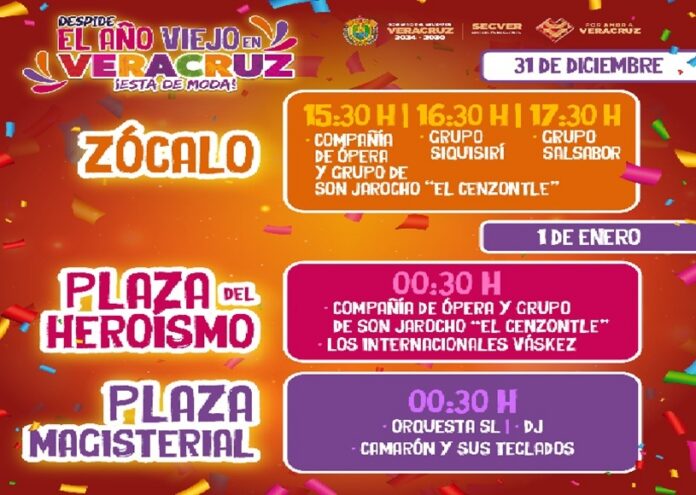 Xalapa, Ver., 30 de diciembre de 2025.- La Secretaría de Cultura de Veracruz (SECVER) invita a la ciudadanía y a visitantes nacionales y extranjeros a las actividades culturales y artísticas programadas para Despide el Año Viejo en Veracruz, una jornada que este miércoles 31 de diciembre transformará espacios emblemáticos del puerto de Veracruz en escenarios de convivencia, identidad y celebración.