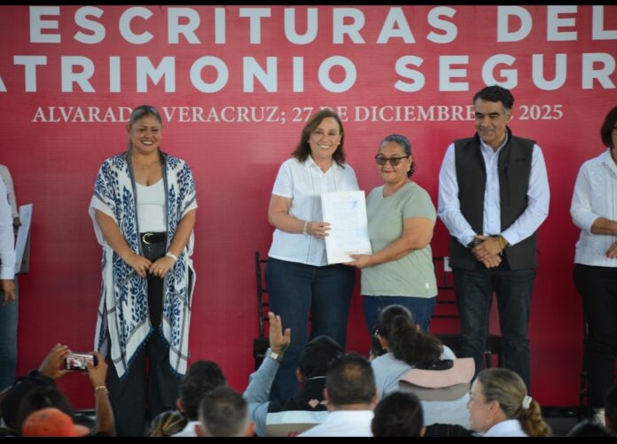 Alvarado, Ver., 27 de diciembre de 2025.– “No es un tema menor entregar una propiedad legalmente; es hacer justicia social y dar tranquilidad a las familias”, afirmó la gobernadora Rocío Nahle García al encabezar en Alvarado la entrega de 336 escrituras del programa Patrimonio Seguro, en coordinación con el Instituto Nacional del Suelo Sustentable (INSUS).
