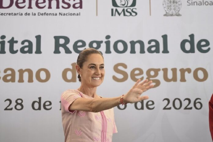 Al encabezar el acto público con la comunidad IMSS, la primera mandataria marcó el inicio de obras del Hospital Regional que contará con 395 camas y 48 especialidades; los trabajos están a cargo de ingenieros militares, quienes “lo hacen con profesionalismo, eficiencia y mucho amor por el pueblo”.