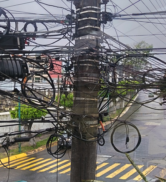 Alguien debería multar seriamente a los cableros por el atentado que hacen contra la estética urbana y alguien debería ponerse a cortar y a desenredar ese atentado en contra de la vista humana.