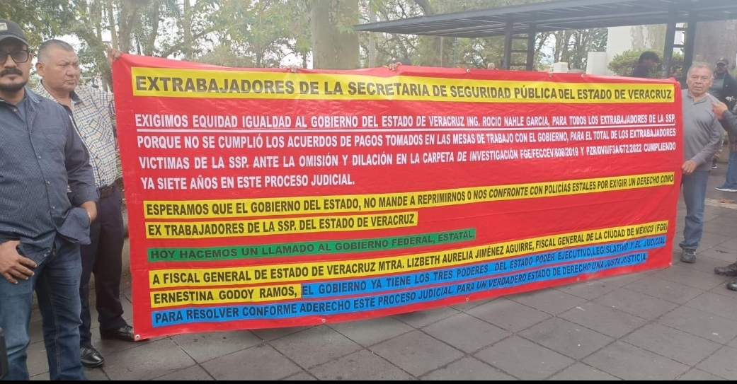 16.02.2026 Xalapa, Ver.- Un grupo de ex elementos de la desaparecida Policía Intermunicipal de Poza Rica, Tihuatlán y Coatzintla se manifestó para exigir la reactivación de su expediente judicial, luego de que —aseguran— la carpeta de investigación donde se integraban sus casos se perdiera tras las inundaciones registradas en Poza Rica.