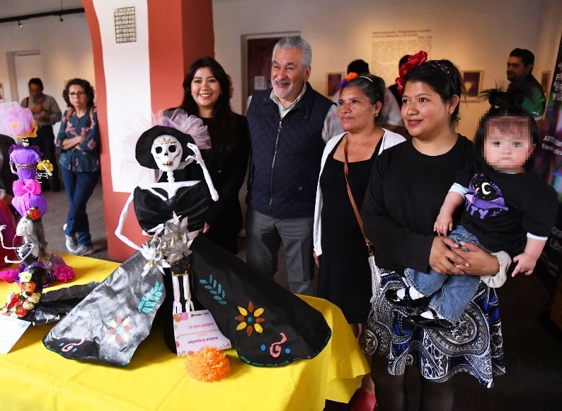 Acompañado por funcionariado del Ayuntamiento, el Edil reconoció el talento, imaginación y creatividad de la ciudadanía y personal de las direcciones de Juventud, Educación y Desarrollo Social, ya que estas catrinas se diseñaron y realizaron en distintos Centros Comunitarios y las bibliotecas municipales, en el marco de la celebración del Día de Muertos.