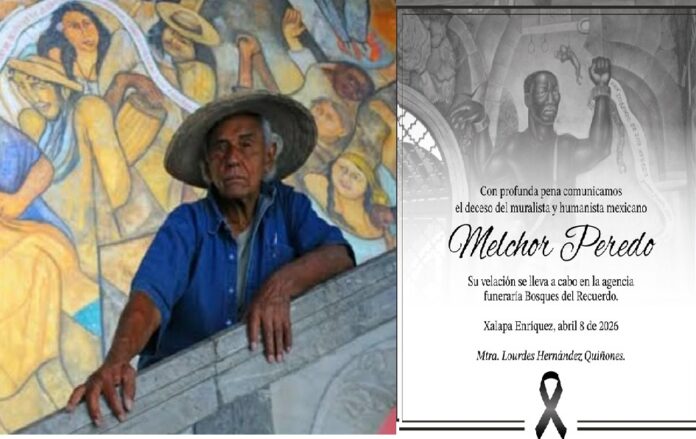08.04.2026 Xalapa, Ver.- El muralista Melchor Peredo García murió a los 99 años durante la madrugada de este miércoles en Xalapa, según confirmó su esposa Lourdes Hernández Quiñones. Su fallecimiento ha provocado consternación entre la comunidad artística veracruzana, donde el pintor desarrolló gran parte de su obra y consolidó una fuerte identidad cultural.