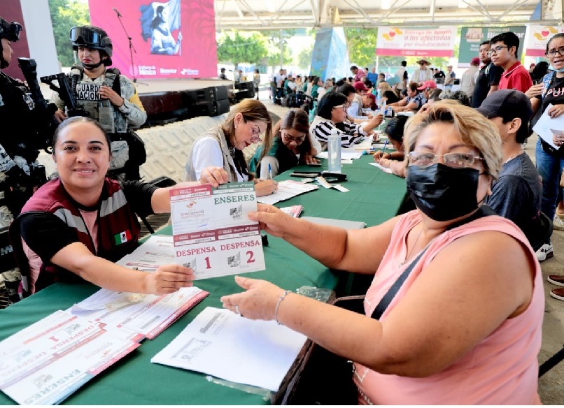 Por su parte, María Magdalena García Martínez, de la colonia Las Gaviotas, compartió que el nivel del agua alcanzó casi dos metros en su vivienda. “Fue pérdida total, pero con este apoyo vamos a comprar lo más necesario, nos quedamos sin nada, pero lo importante es que tenemos la vida. Agradecemos mucho a las autoridades por su ayuda”, expresó.