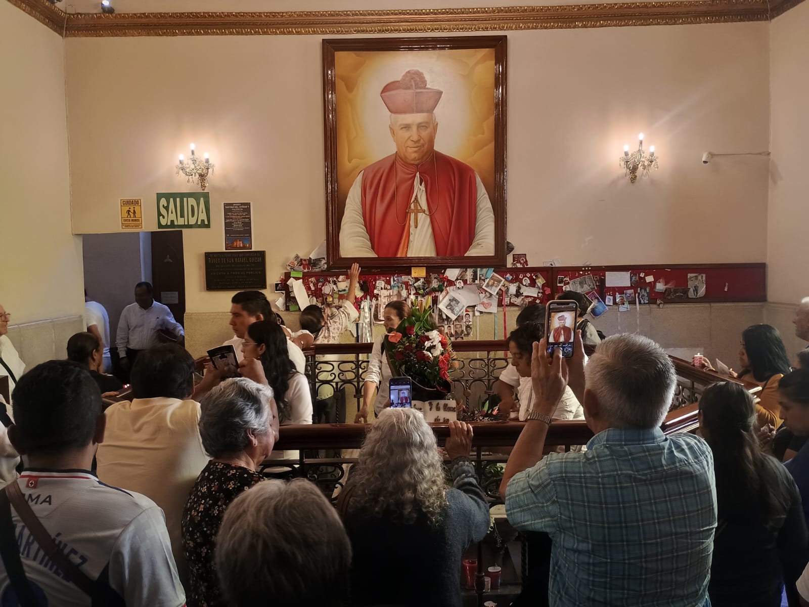 “Anoche la Catedral no se cerró; hubo misas cada hora y todos quieren pasar a la tumba, ver el arco floral que prepara la gente de Ocelo y encomendarse a San Rafael”, relató Beristain de los Santos.