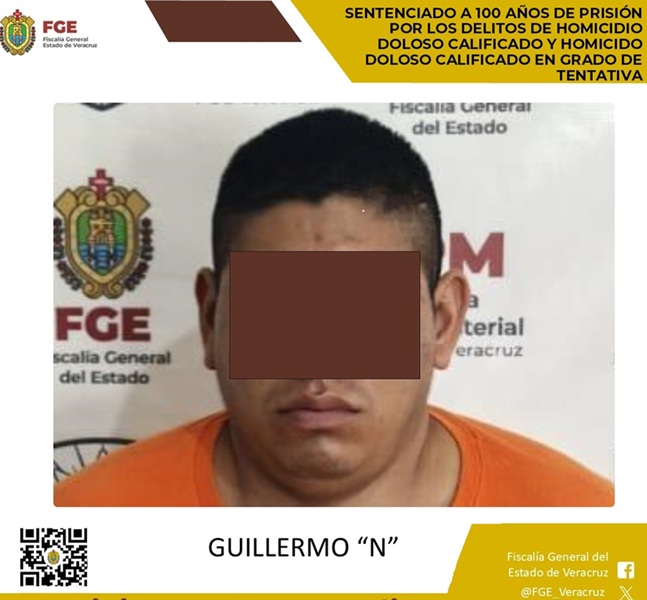 Como resultado de una investigación ministerial sólida y el desahogo de pruebas en juicio oral, la Fiscalía General del Estado de Veracruz, a través de la Fiscalía Regional Cosamaloapan, logró una sentencia condenatoria de 100 años de prisión en contra de Guillermo “N”, declarado por el órgano jurisdiccional responsable de los delitos de homicidio doloso calificado, en agravio de cuatro víctimas, así como homicidio doloso en grado de tentativa, en perjuicio de dos más.