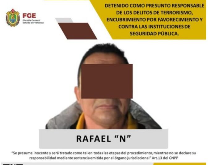 25.12.2025.- La Fiscalía de Veracruz confirmó la detención y vinculación a proceso del reportero policiaco Rafael “N”, a quien ha acusado de delitos graves como terrorismo, encubrimiento por favorecimiento y delitos contra las instituciones de seguridad pública.
