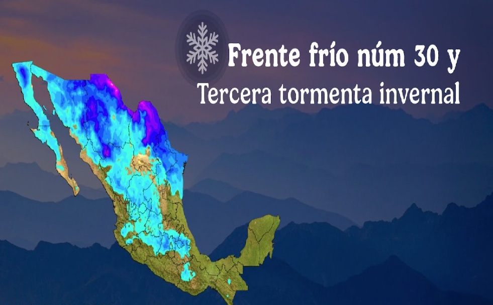 21.01.2026.- El ingreso del Frente Frío número 30 al territorio nacional marcará un nuevo episodio de bajas temperaturas, lluvias intensas y posibles nevadas en diversas regiones del país.
