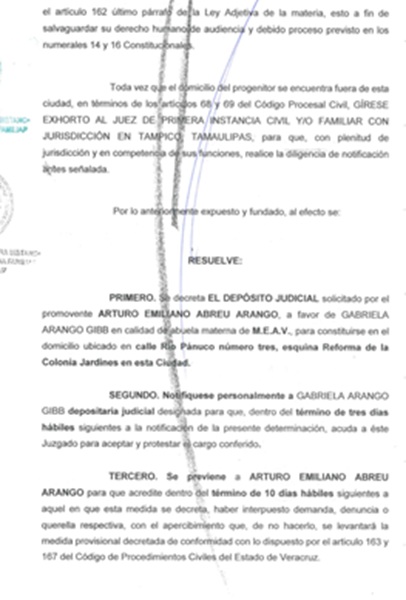 *** ¡Depositaria judicial de menor! En efecto, la ex diputada local Gabriela Arango Gibb fue detenida Puebla este jueves por el presunto delito de Sustracción de Menor, pero al parecer esa detención debió ser un confusión, que que si bien es verdad que ella iba con el menor en cuestión, también es verdad que la ex legisladora tiene documentos que la acreditan como depositaria judicial del referido menor… Ella tenía la responsabilidad judicial del resguardo del menor, como se demuestra con el documento anexo… Y no parece haber estado prófuga de la ley por 7 meses, como se comenta en algunas redes sociales…