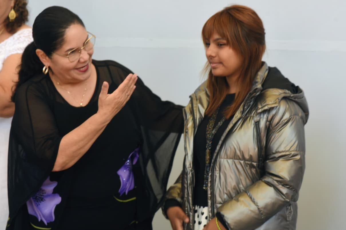 La secretaria Claudia Tello Espinosa destacó la trayectoria de Adhara Maite, subrayando que, además de su inteligencia y crecimiento, demuestra compromiso con el bienestar común y entiende que el conocimiento debe servir a los demás.