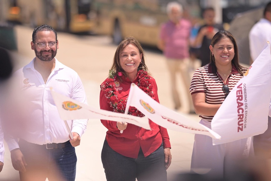 Coatzacoalcos, Ver., 26 de marzo de 2026.- La gobernadora Rocío Nahle García dio el banderazo de inicio a las primeras 60 unidades del transporte público Quetzalli, que desde hoy operan en Coatzacoalcos para optimizar la movilidad, elevar la calidad del servicio y dignificar el traslado de la población.