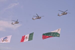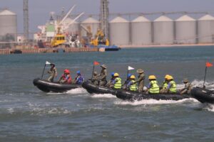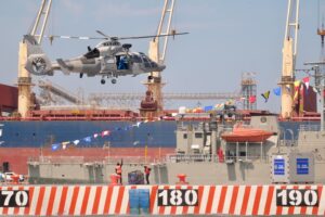 *En el puerto Cuatro Veces Heroico, mostró su poder aéreo, marítimo y anfibio.