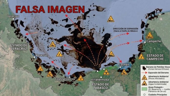 La mandataria evidenció que dicha representación exageraba el alcance del derrame e incluso inducía a pensar que su origen estaba directamente relacionado con la refinería Olmeca ubicada en Tabasco.