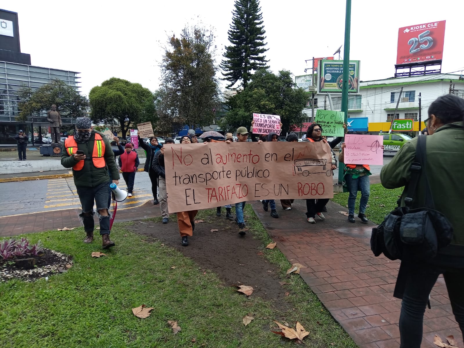 Durante la movilización de un pequeño grupo, los participantes señalaron que gran parte de la población de Xalapa, en particular estudiantes universitarios, utilizan uno o más camiones al día, por lo que el aumento de tres pesos por pasaje implica un gasto considerable cuando se calcula de manera mensual o anual.