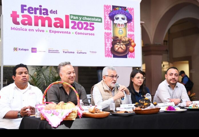 28.10.2025 Xalapa, Ver.- Los eventos de turismo gastronómico posicionan a Xalapa como un destino turístico relevante en el nivel local, nacional y estatal, y consolidan el desarrollo económico, afirmó el alcalde Alberto Islas Reyes durante la presentación de la Feria del Tamal, Pan y Chocolate 2025, que se llevará a cabo del 31 de octubre al 2 de noviembre en el Parque Benito Juárez.